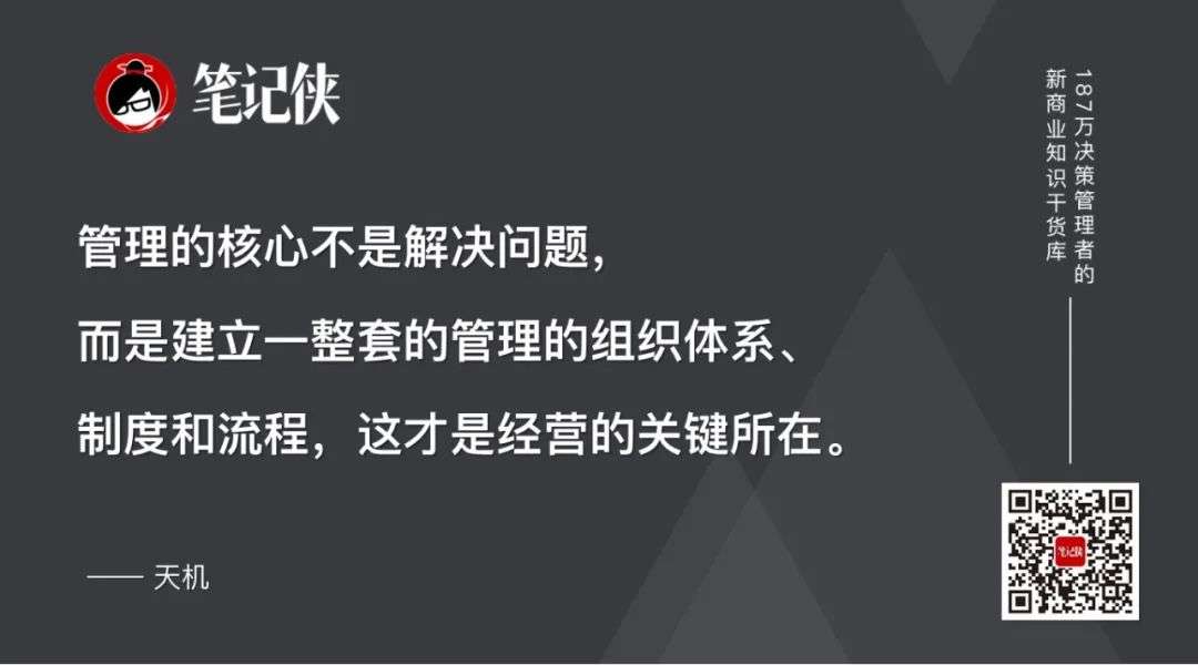 管理的核心不是解决问题,而是建立一整套的管理的组织体系、制度和流程,这才是经营的关键所在。