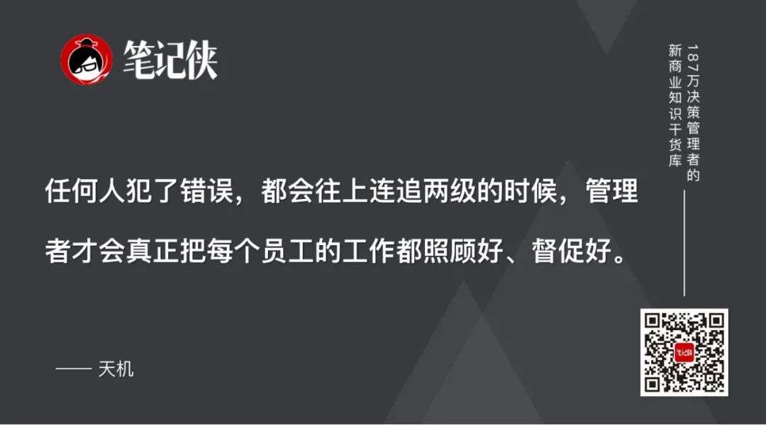 只有通过组织的方式,制度的方式去严格要求,任何人犯了错误,都会往上连追两级的时候,管理者才会真正把每个员工的工作都照顾好、督促好。