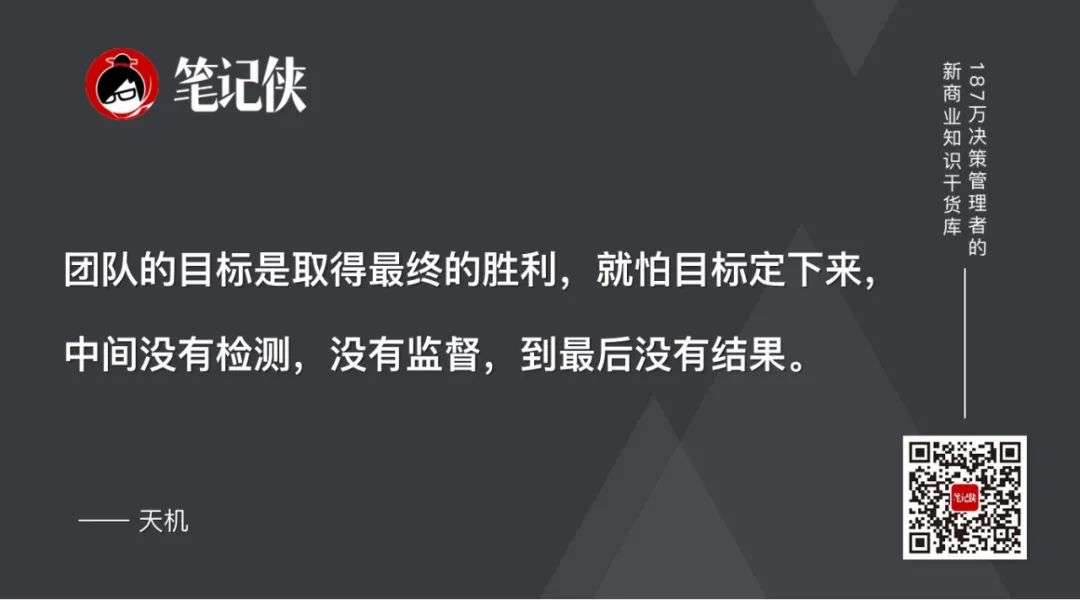 团队的目标是取得最终的胜利,就怕目标定下来,中间没有检测,没有监督,到最后没有结果。