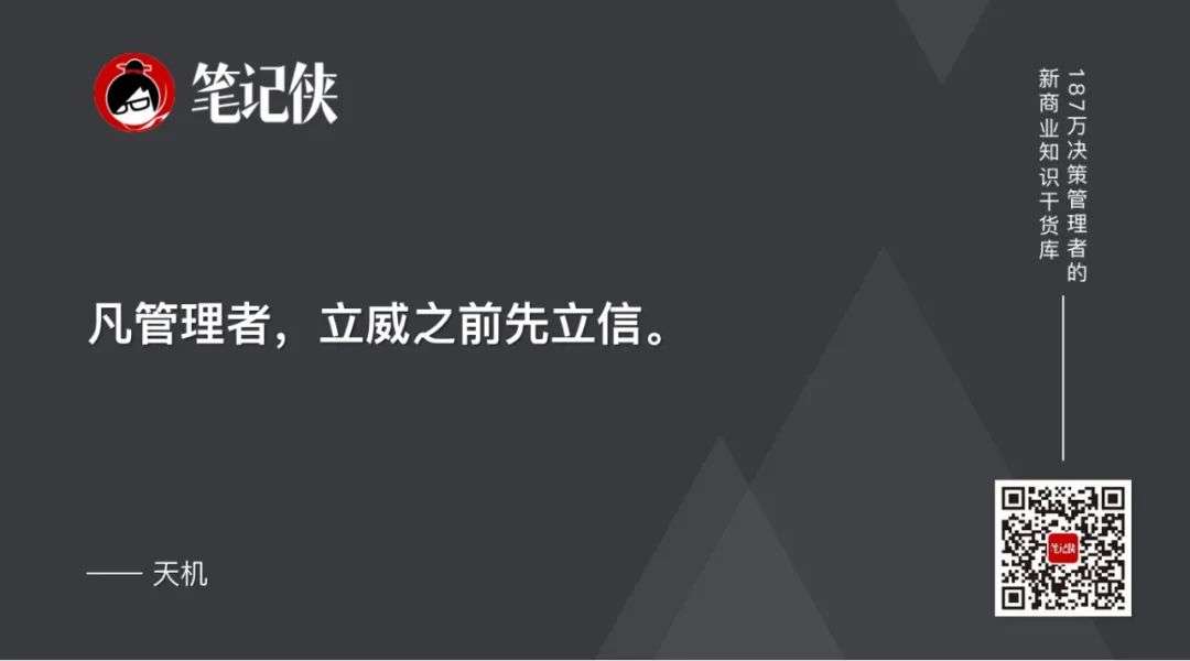 凡管理者,立威之前先立信。你在用力量和威严的方式执行决策之前,一定先让大家相信你是真的讲信用的。