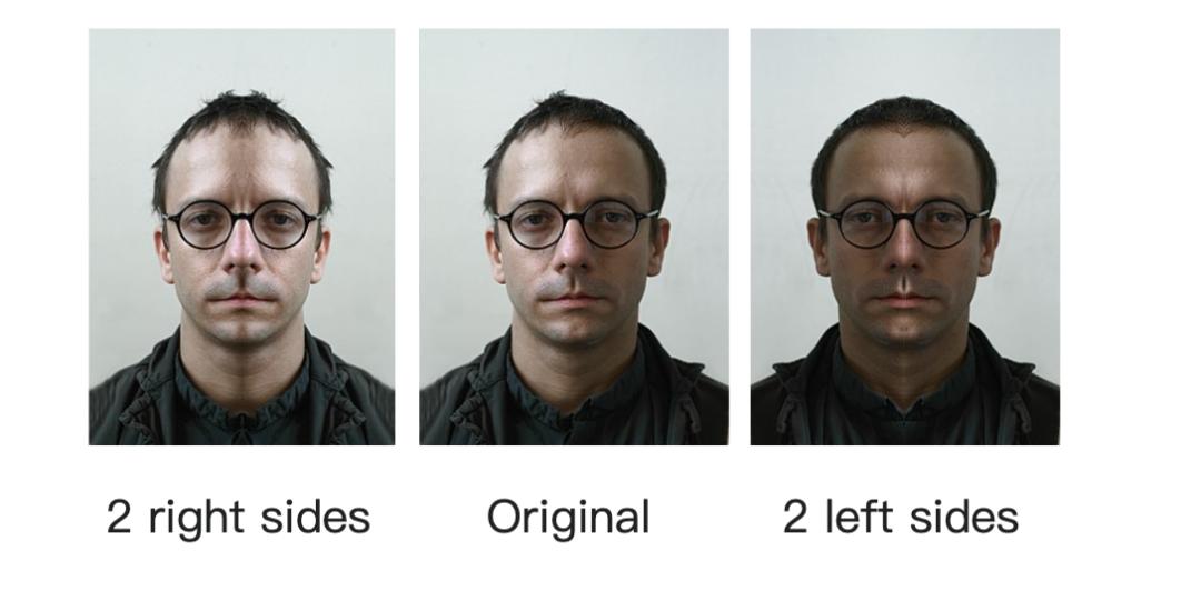 中间为原始照片,左侧和右侧分别为双右脸和双左脸。(图 Wiki)
