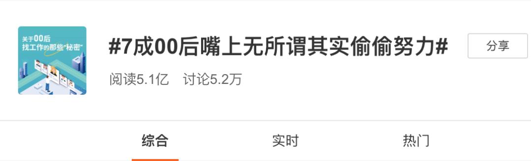昨天,一个“7成00后嘴上无所谓其实偷偷努力”的词条,冲上了热搜前10。