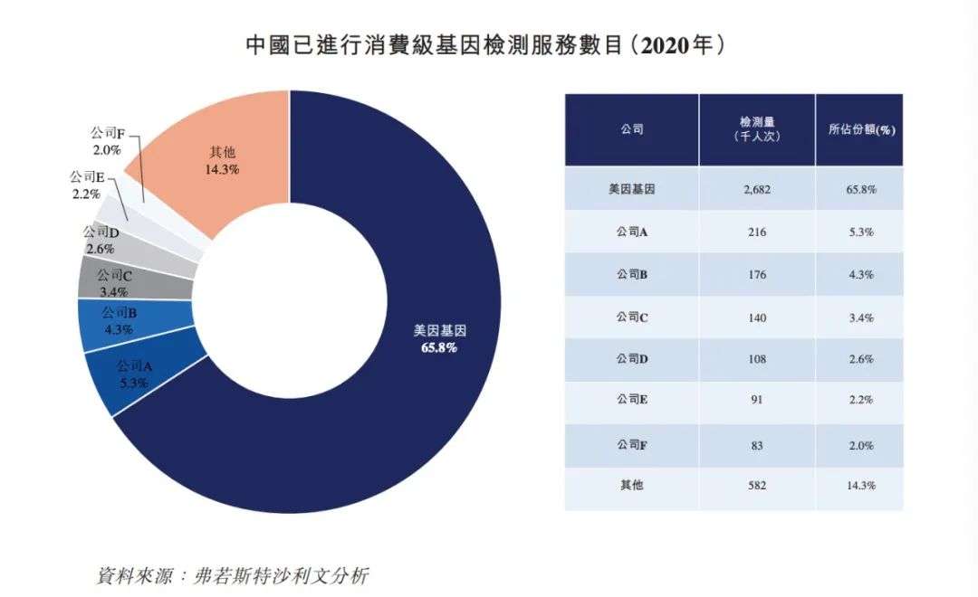 是为了凸显自己的行业地位吗?招股书中,美因基因以2020年的检测量、收益,计算出了其目前在中国消费级基因检测服务的市场份额最大(34.2%),而其“最有力竞争对手”的市场份额也只有10.0%;2020年进行270万次检测,占中国消费级基因检测服务总数的65.8%,是其“最有力竞争对手”所进行的检测次数的十倍。