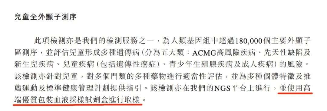 节点财经随后查询美因基因招股书,里面也明确指出全基因组测序及全外显子组测序是 “使用高端优质包装血液采样试剂盒进行取样”。招股书与商品详情存在矛盾之处。