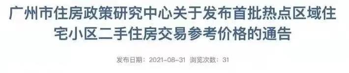 广州在8月31日迎来二手住宅指导价落地