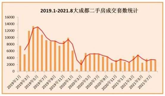 相较于7月的17923套减少了1981套, 环比下降10.7% ,相较于3月最高22251套减少近三成,二手 成交数据也在今年8月有稍微的回落