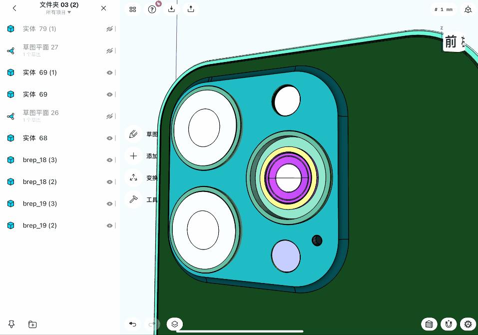 至此,我们已经完成了 iPhone 13 Pro 的白模,Shapr3D 的任务也告一段落,下一阶段我们将转战 PC 端,用 KeyShot 这款软件为模型进行贴图渲染。