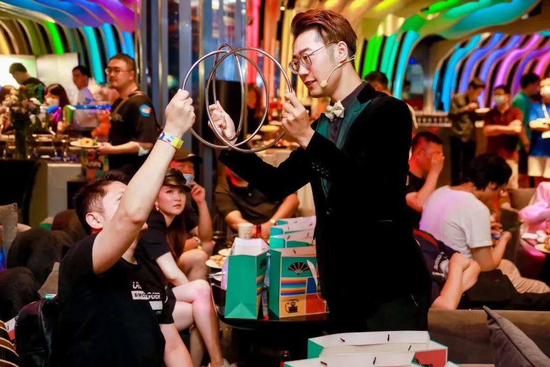 坐拥无敌江景的外滩Club,这里有近景魔术、开放麦1min talkshow(介绍自己/合作意向/打个广告 )、醇酒美食聊不尽的合作机会、豪礼抽奖、云直播相册随拍随传。