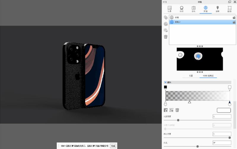 此时体现出 KeyShot 的另一处优势,光源调整后,画面里的光影也会实时发生变化。