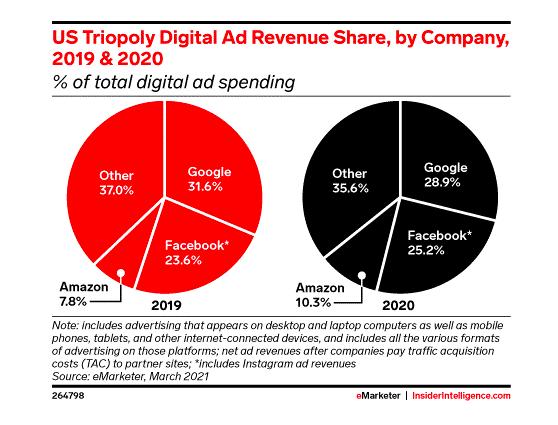 2020年,亚马逊已经占据了美国广告市场 10% 的份额,而其广告收入仍在持续攀升。