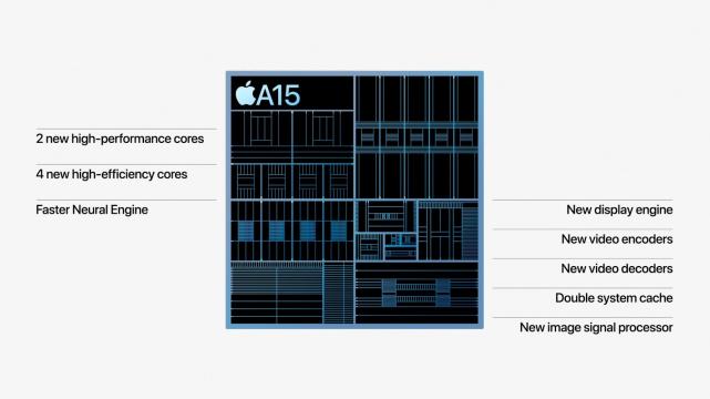 iPhone 13全系都升级了A15处理器,这成为了每年苹果在iPhone发布会上的必选项。但今年苹果没有用过多的篇幅去介绍这颗A15 bionic仿生芯片,只介绍了这颗处理器采用了和去年A14一样的5nm工艺,内置6个核心,包括2个大核+4个小核。