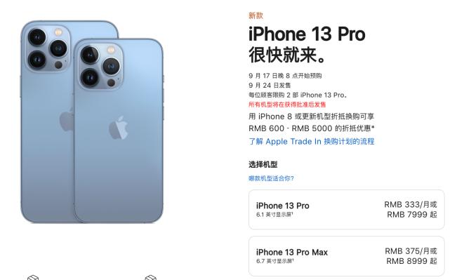 其中iPhone 13 mini和iPhone 13的起售价分别为5199和5999元,比去年iPhone 12系列在存储容量翻倍的情况下,零售价格便宜了300元;iPhone 13 Pro和iPhone 13 Pro Max的起售价为7999和8999元,比去年iPhone 12 Pro系列分别便宜了500元和300元。