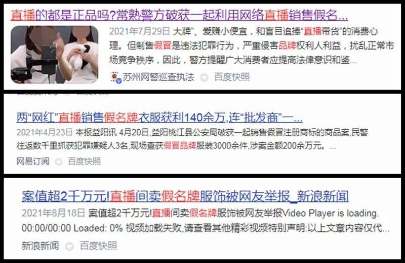 虚假的大牌服装、皮包、手表、护肤品被摆进了直播间中,即使有公安部门的严厉打击,依然屡屡出现。