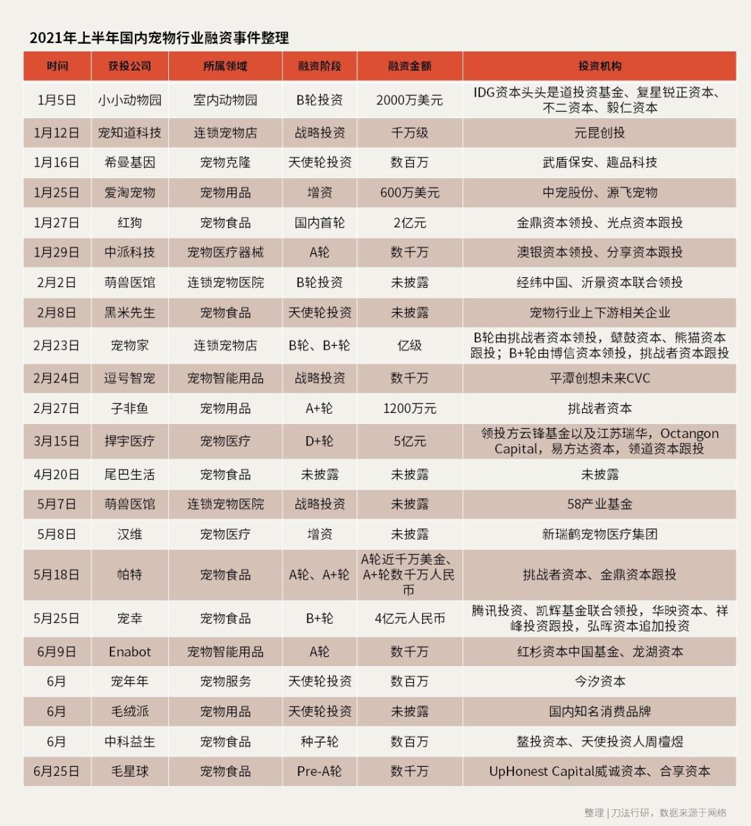 据不完全统计,仅仅在2021年上半年,国内宠物赛道就发生了高达22笔融资,其中披露出的过亿级别的融资事件有5起。