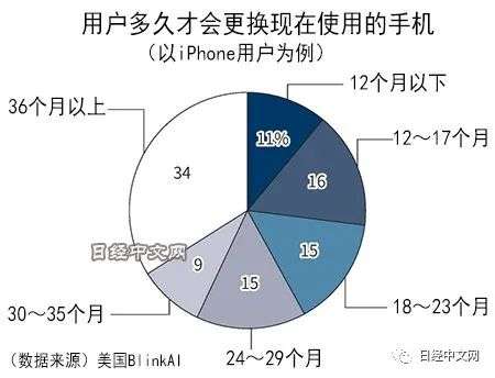 BlinkAI的调查显示,iPhone用户中回答现在使用的机型连续用了3年以上的比例达到34%。苹果追求提高单价的高端化路线,结果高端机型的价格开始超过1000美元,消费者越来越难以换新机。