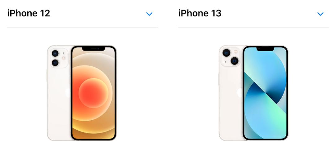 库克开心地说,这是我们为大家带来的新一代iPhone13,然后就有了下面的对比图: