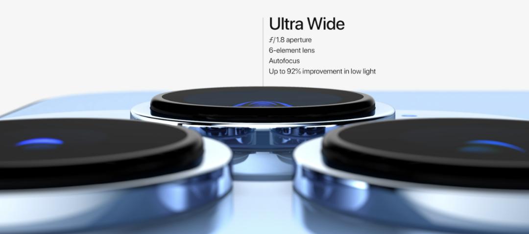 iPhone 13 Pro和iPhone 13 Pro Max则配备了1200万长焦、广角、超广角三摄模组,其主摄单位像素面积提升到了1.9微米,光圈增大至f1.5,77mm的长焦镜头也支持3倍光学变焦,而且引入了微距摄影功能和自动对焦功能。