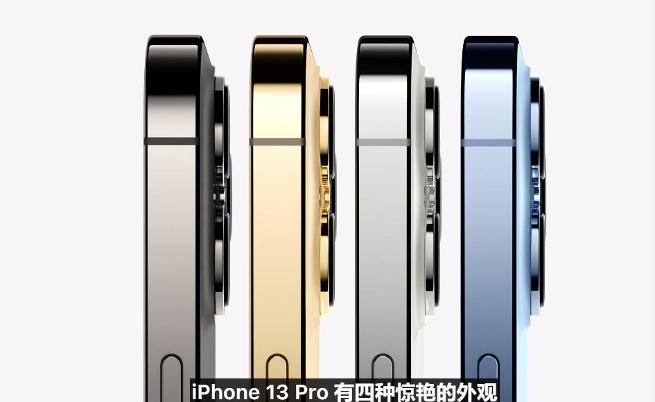 配色是iPhone 13的一大亮点。中端的iPhone 13/13 mini新增了粉色,以吸引年轻的女性用户,此外还提供黑、白、红、蓝等配色;高端的iPhone 13 Pro/Pro Max则分为天蓝、金色、银色和石墨色,整体观感较为商务范儿。