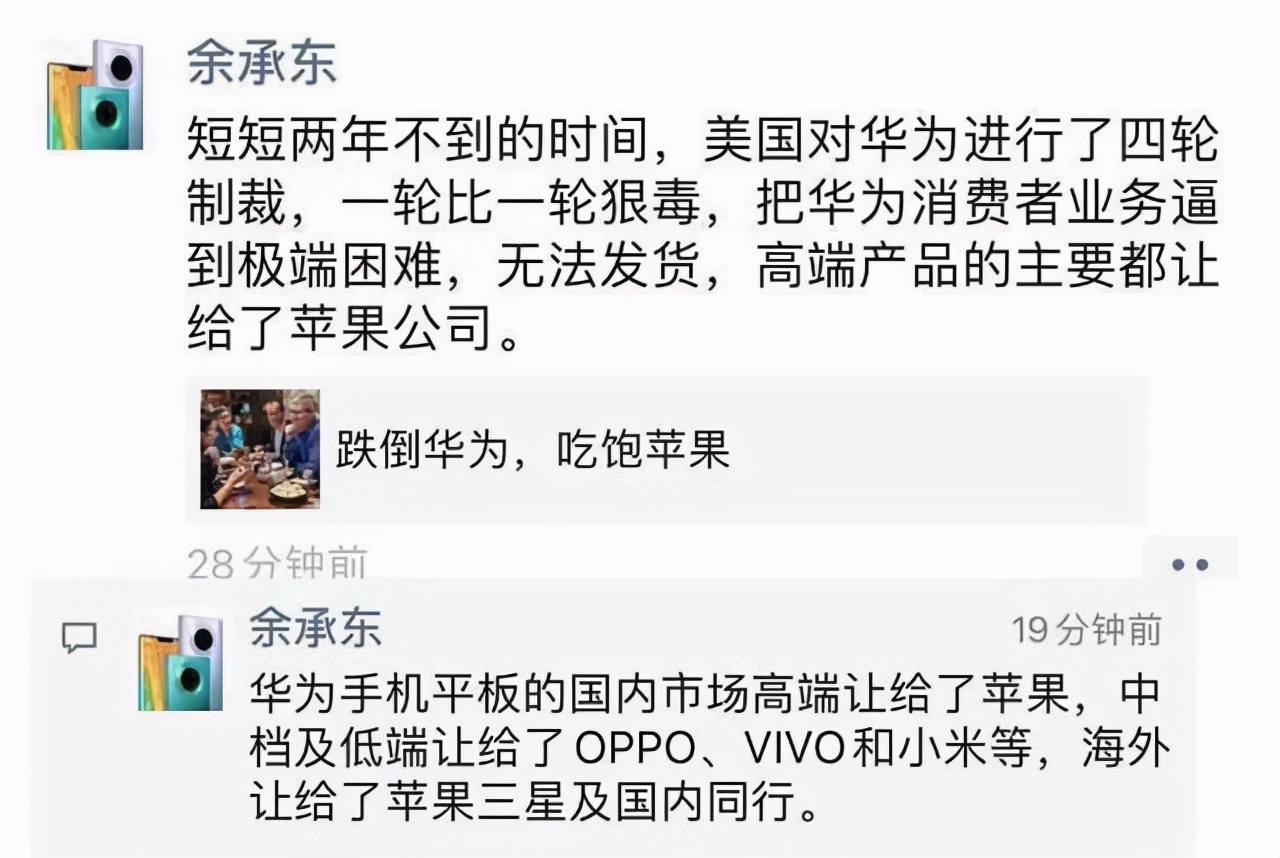 但随着华为遭遇美国打压、芯片短缺,市场格局迅速发生变化。虎嗅在一篇题为《跌倒华为,吃饱苹果》的文章中称,今年第一季度,苹果在5000~8000元价位手机市场的份额增至59%%,而华为跌至37%。彼时,掌管华为消费者业务的余承东感叹,“高端产品主要都让给了苹果公司”。