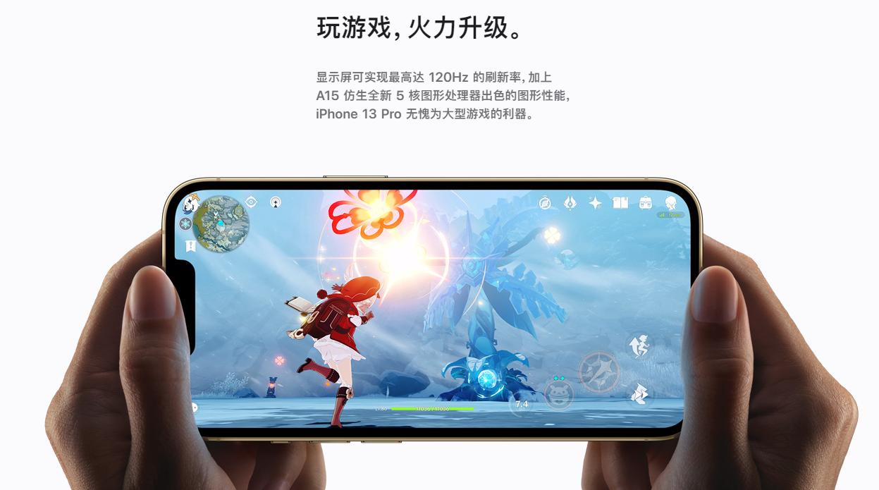 发布会上,一个有趣的细节是,为了展示iPhone 13的游戏性能,苹果选择了热门国产游戏《原神》的画面。此前,苹果通常会选择美式或日式游戏进行演示,今年却翻了《原神》的牌子,显然是为了吸引中国用户的注意力。