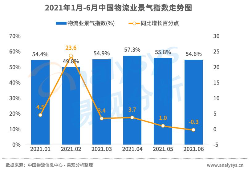 2021年中国物流业景气指数相较于2020年同期,大多数保持正增长的态势,受疫情的影响,线上消费逐渐受到用户的重视,使得线上消费带动快递快运业,其增势依然强劲。易观分析认为,随着智慧物流的不断完善发展,物流业景气指数将会进一步增长。