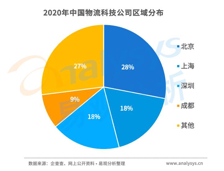 从区域分布来看,目前,我国物流科技公司主要分布在北京、上海和深圳,这三个城市的公司合计数量占总数量的比重达64%,可以看出对于智慧物流的现阶段发展,各大科技公司多数还是以一线城市为主。