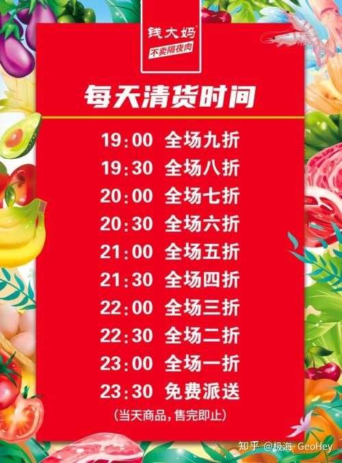 4、强制促销打折。为了兑现“不卖隔夜菜”的承诺,钱大妈推出了阶梯式的促销手段。“每晚七点后九折,每半小时再降一折,十一点半后免费送”,这充分激发了大家的占便宜心理,养成了很多人特意等到打折时间来光顾的习惯。而这种激进的打折方式,也直接导致了加盟商的亏损。