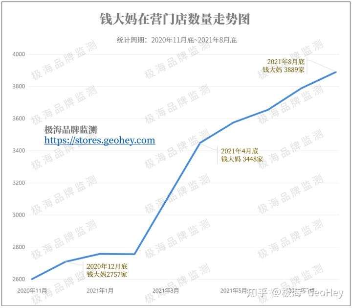 从去年年底到今年8月底,短短8个月的时间,门店数量从2757家增长到3889家,增幅高达41%,其中大部分都以加盟店为主。