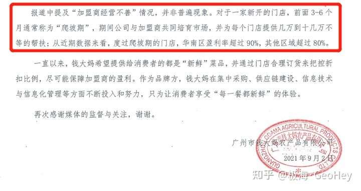 根据钱大妈的官方回应,度过爬坡期的门店,华南区盈利率超过90%,其他区域超过80%。