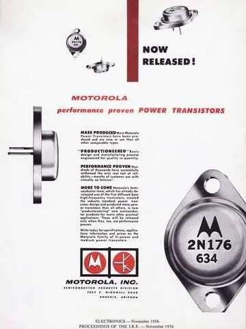 1955年,摩托罗拉生产了世界上第一批商用高功率晶体管,用于车载无线电。