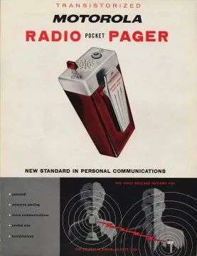 同年,摩托罗拉制造出世界上第一台无线寻呼机(PAGER)。这种小型的无线接收机小巧轻便、便于携带,可以接收信息,早期服务于医院等用户。