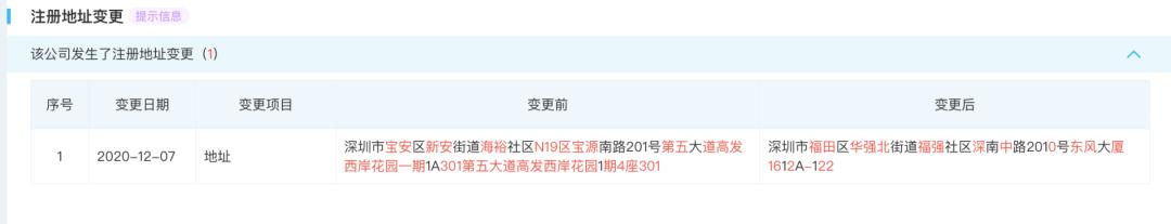 而另外一家抖音小店“蔚澜全球购”,带有“安心购”标识,其营业执照上显示公司名称为“深圳蔚澜贸易有限公司”。新腕儿通过天眼查专业版搜索后发现,该公司的预警提醒已有4条,其中一条显示:2020年12月,“深圳蔚澜贸易有限公司”将公司注册地址从深圳市宝安区变更到了福田区华强北街道。