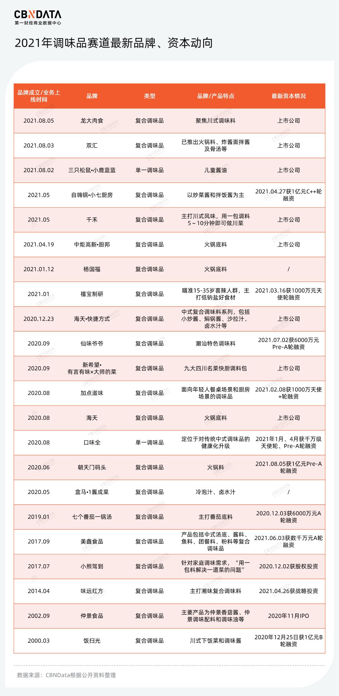 CVSource投中数据显示,在2020年年末和2021年年初,10余家机构密集入局复合调味赛道。