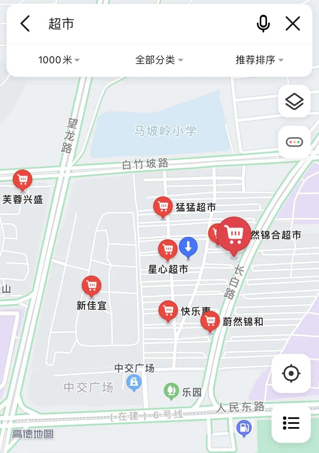 「电商在线」搜索发现,这家小店所处的长沙望龙新城小区,是长沙本地居住密度很大的社区之一,有3500多户10000多人口。从地图来看,小区周围仅1公里左右的范围内,就有大小超市近10家。