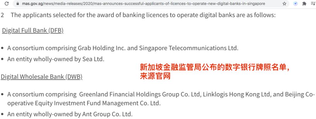 而韩国纯网络银行Toss Bank已获得当地金融监管部门批准设立,预计最快本月营业。这是2016年12月的K-bank和2017年4月的Kakao Bank后,当地时隔四年再次下发的一张互联网银行牌照。此前我一直关注新加坡金融监管局对设立数字银行的审批进展,目前四张牌照——即两张全能银行 Digital Full Bank牌照和两张批发银行Digital Wholesale Bank牌照已经名花有主(下图),但离组建开业为时尚早,这方面韩国市场动作很快。