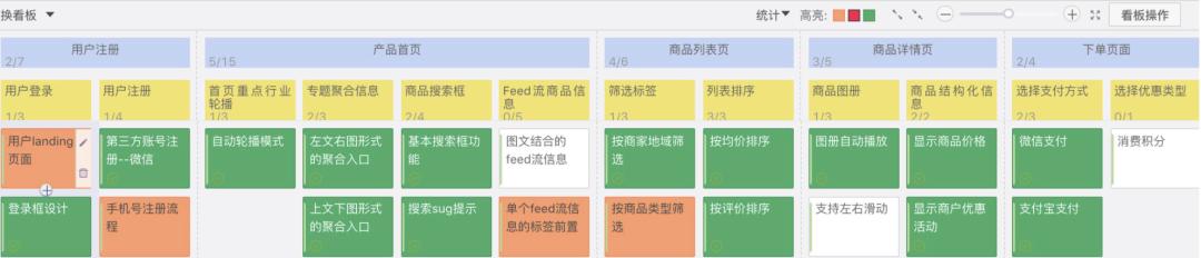 。比如下面是在线购书网站的用户故事地图,就是以实际的功能场景来梳理用户故事。