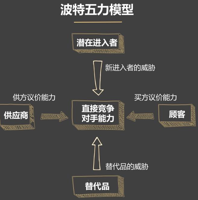 针对产品经理如果不熟悉公司业务,很难找到精准的竞品。所以波特五力模型,利用了潜在进入者、顾客、替代品、供应商、直接竞争对手能力