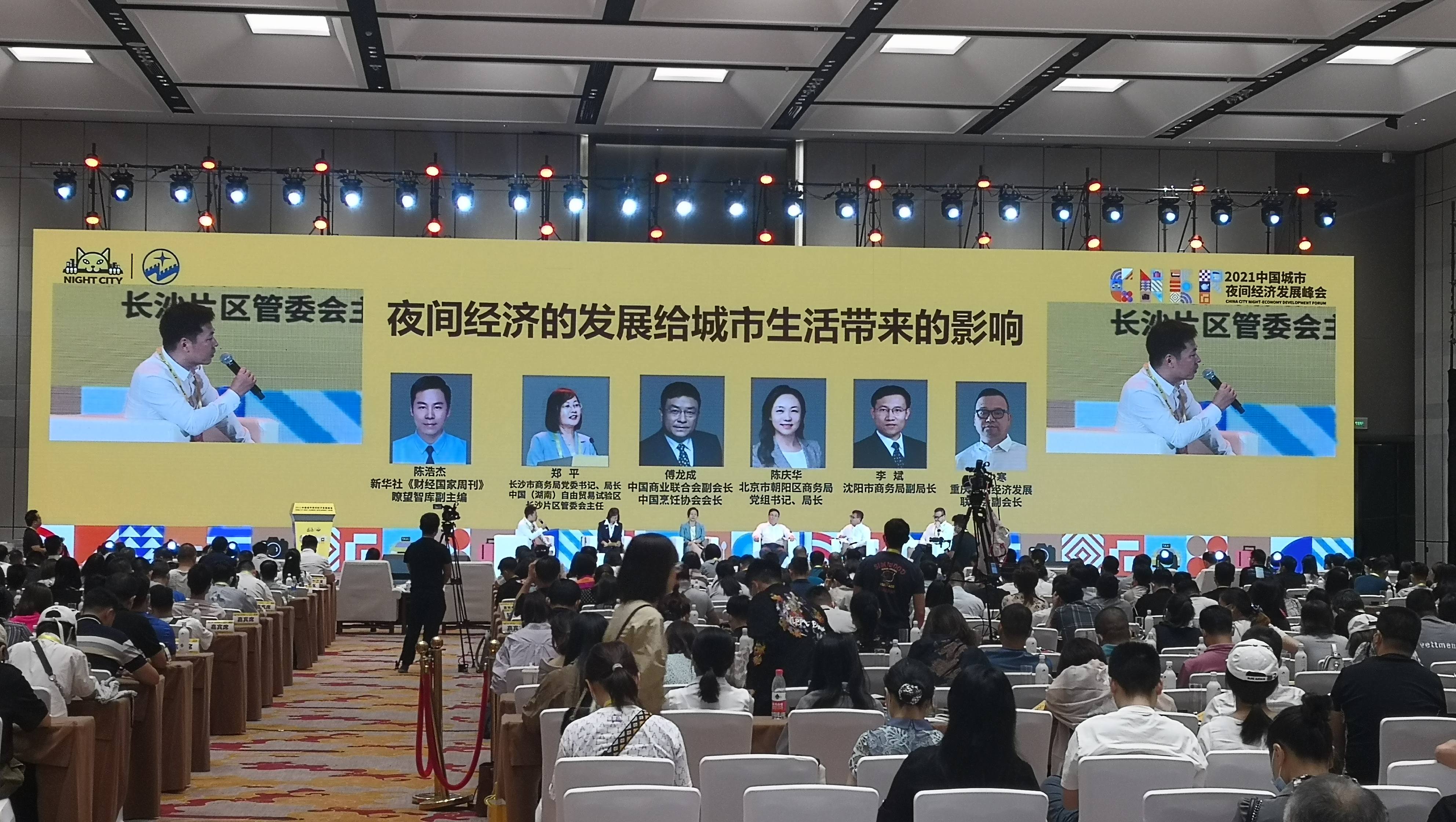 圆桌对话重磅嘉宾云集,由新华社《财经国家周刊》、瞭望智库副主编陈浩杰主持,中国商业联合会副会长、烹饪协会会长傅龙成,北京市朝阳区商务局党组书记、局长、二级巡视员陈庆华,长沙市商务局党委书记、局长、中国(湖南)自由贸易试验区长沙片区管委会主任郑平,沈阳市商务局副局长李斌,重庆夜间经济发展联合会副会长、重庆梧桐子商业管理有限公司总裁费少寒等嘉宾围绕“夜间经济的发展是给城市生活带来的影响”这一话题探讨分享,各城市代表分别从国家政策、行业发展等方面交流夜间经济发展经验,探寻夜间经济与经济社会建设和城市治理的协同发展路径,助力城市消费发展创新升级。