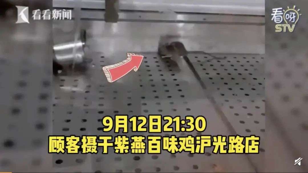 据看看新闻knews报道,9月12日晚,一位上海市民拍到紫燕百味鸡沪光路店橱窗里老鼠乱窜。视频显示,一只老鼠在用于摆放菜品的食品柜里窜动,还钻进一个圆柱形容器里。