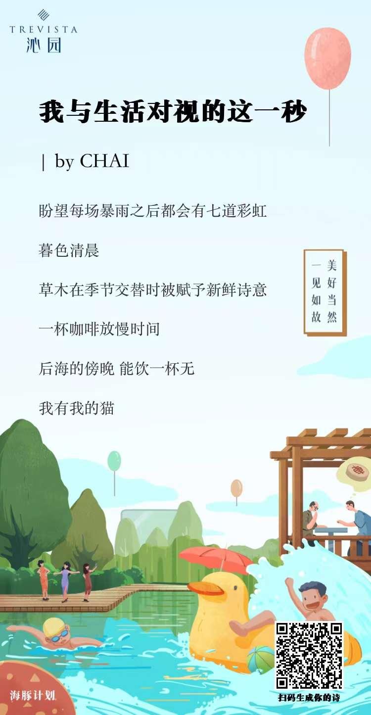 这次,在「沁园和他的诗」中,用「脚步与时间」、「美丽的一天」、「方寸之间」为灵感,可以选择专属关键词,创造一首名为「我与生活对视这一秒」的诗。