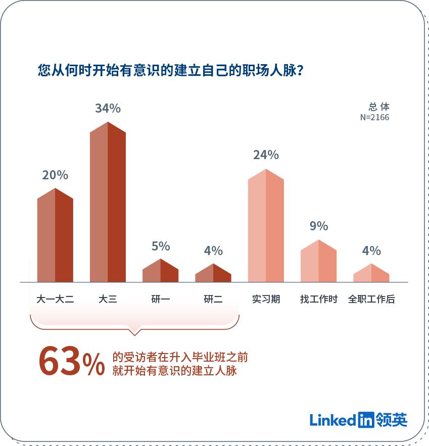 超6成的大学生/职场年轻人在读书时就有了建立职场人脉的意识。