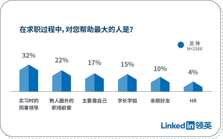 像玉璞这样受到前辈帮助的人不在少数。超5成受访者认为,职场前辈是在求职过程中对自己帮助最大的人。