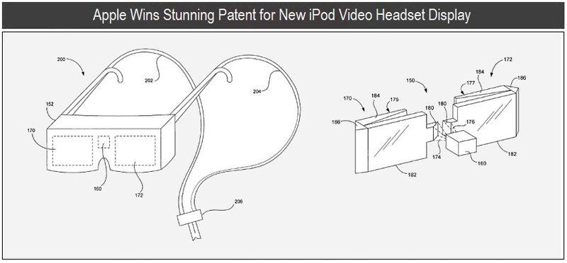 苹果的第一个 AR 专利,是 2009 年为 iPod Nano 设计的「头戴显示屏幕」,能够将图像投影到设备的玻璃显示屏上|图片来源:patentlyapple