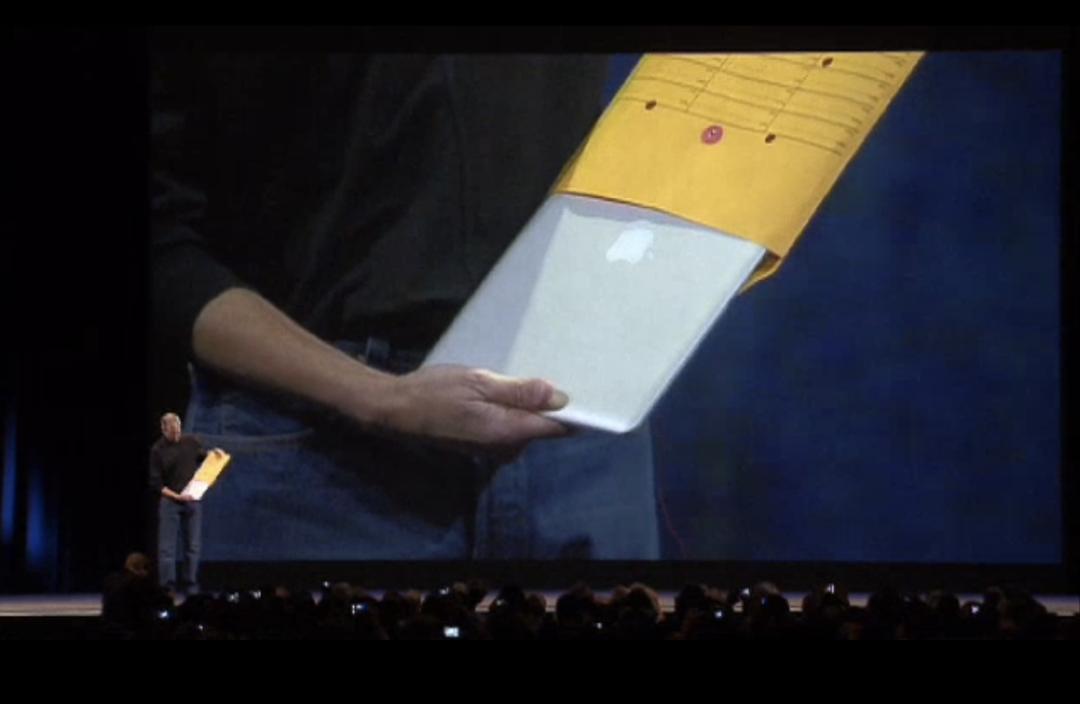 2008年,乔布斯从信封中掏出第一代 Macbook Air。很长一段时间内,MBA 都是世界上最薄的笔记本电脑|图片来源:Apple