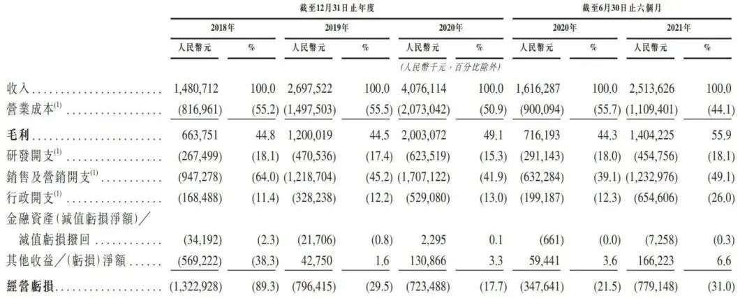 招股书数据显示,2018年-2020年,喜马拉雅的营收分别为14.81亿元、26.98亿元、40.76亿元,呈现出持续增长的态势。而今年上半年,公司已实现25.14亿的营收,同比增长55.5%。但是,这个增速比不上公司成本抬升的速度。