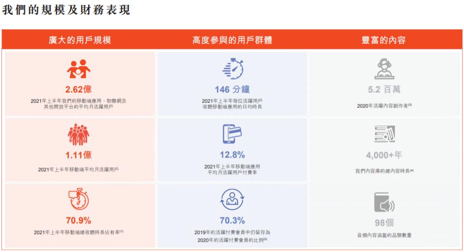 一方面,根据招股书数据,截至2021年6月,喜马拉雅平均总月活跃用户达到2.6亿。其中,移动端平均月活跃用户为1.1亿,另外1.5亿则是通过物联网及其他开放平台收听音频内容的平均月活跃用户。