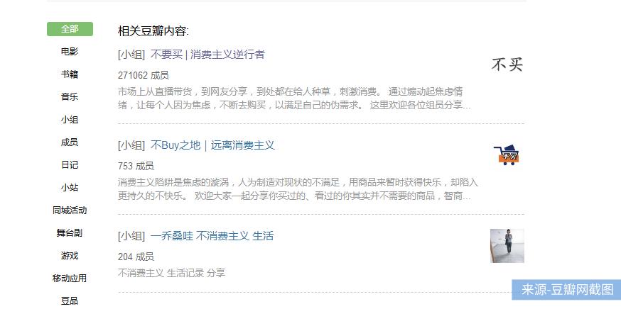 这一点同样体现在豆瓣上。去年10月在豆瓣上成立的“不要买|消费主义逆行者”小组,如今人数已达27万,“不盲目跟风,不被消费主义裹挟,做消费主义市场的逆行者!”的小组宣言鲜明代表了这部分年轻人的态度。