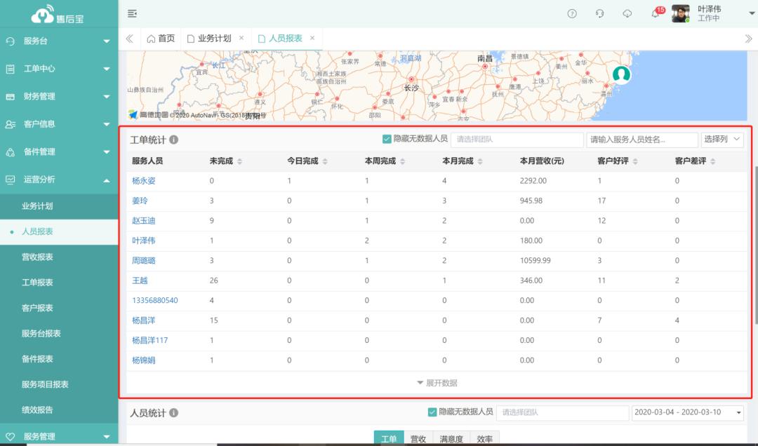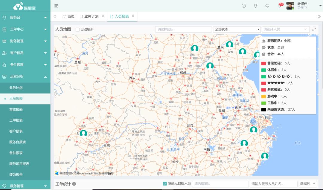 ▲基于位置等因素地图派单、通过报表查看工程师状态科学派单
