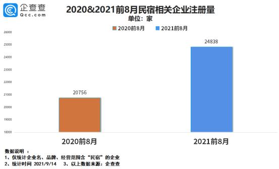 值得一提的是,从今年的注册量来看,2021年前8月,我国民宿相关企业注册量为2.5万家,同比增长了19.7%。从今年前8月的注册趋势来看,我国民宿相关企业2021年的注册量将再创新高。