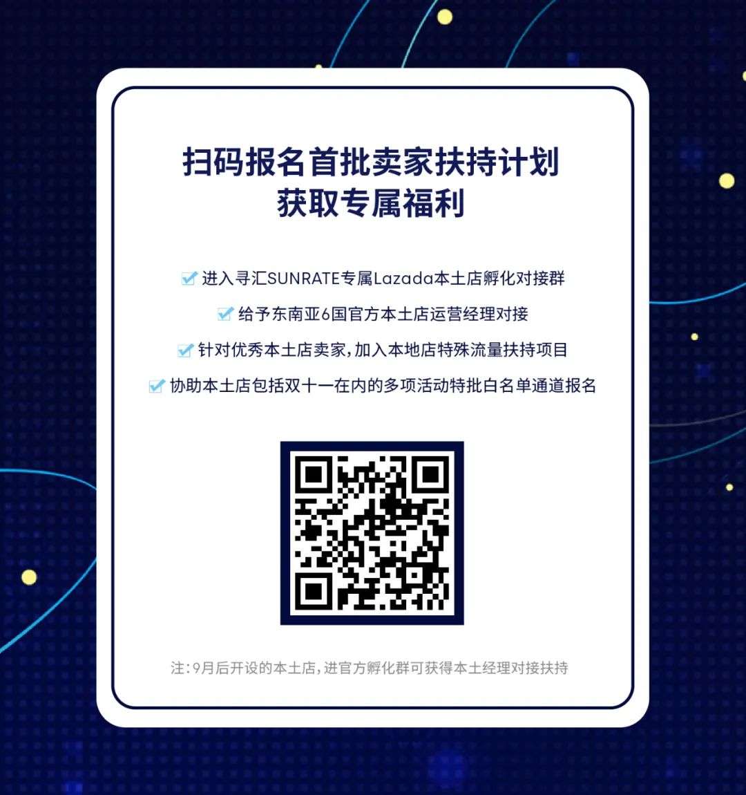 为给予本土卖家更强大的扶持力量,今年7月份,Lazada新加坡总部在中国设立了本土店孵化团队,寻汇SUNRATE已成为Lazada官方首批20家限定服务商之一,将携手Lazada共同为卖家提供东南亚本土店孵化对接,扶持卖家东南亚业务发展壮大。